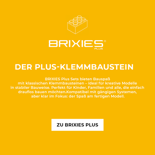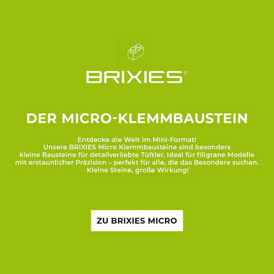BRIXIES Micro besteht aus besonders kleinen Klemmbausteinen und eignet sich ideal für detailreiche, filigrane Modelle. BRIXIES Plus verwendet größere Steine im klassischen Format – einfacher zu verbauen und perfekt für den schnellen Bauspaß.