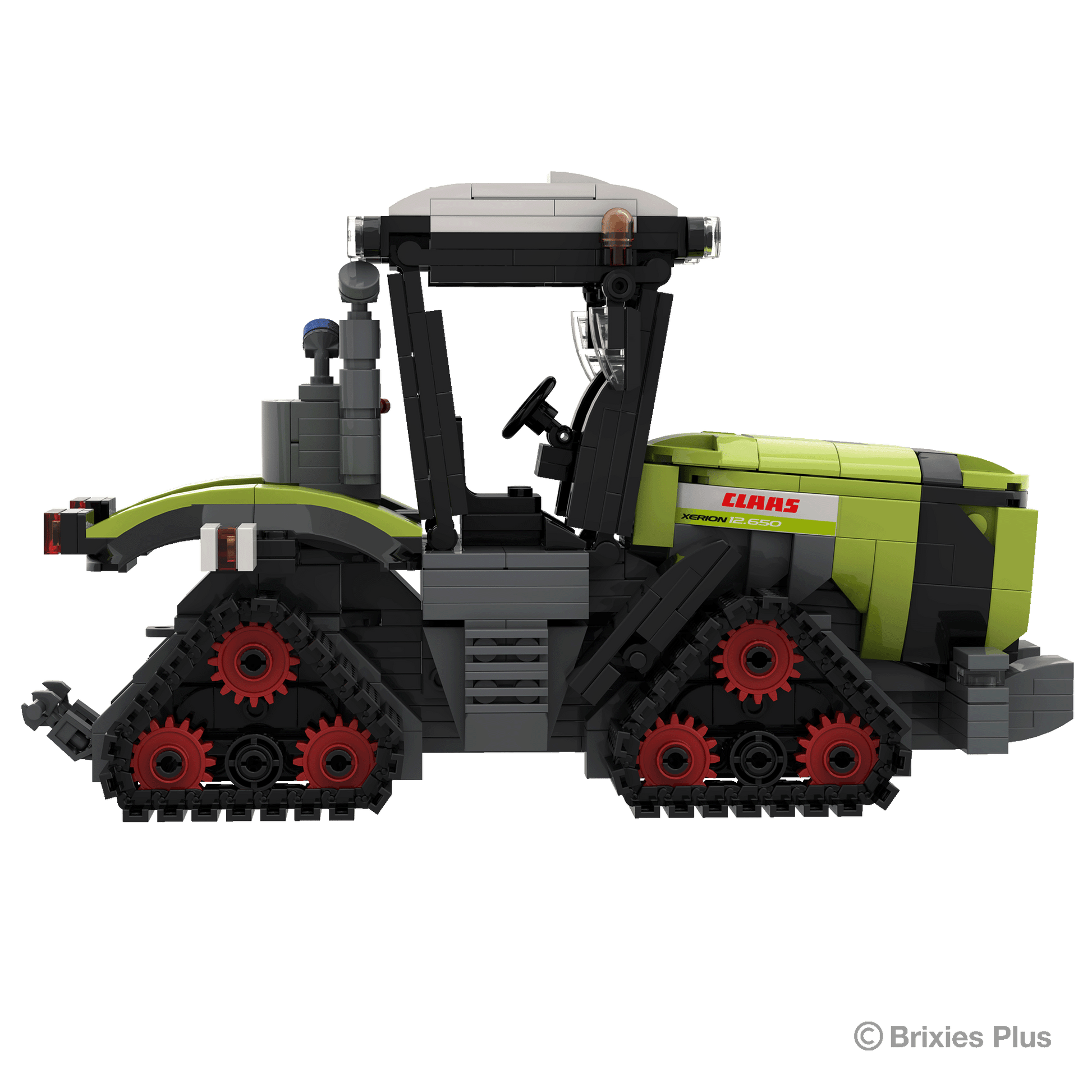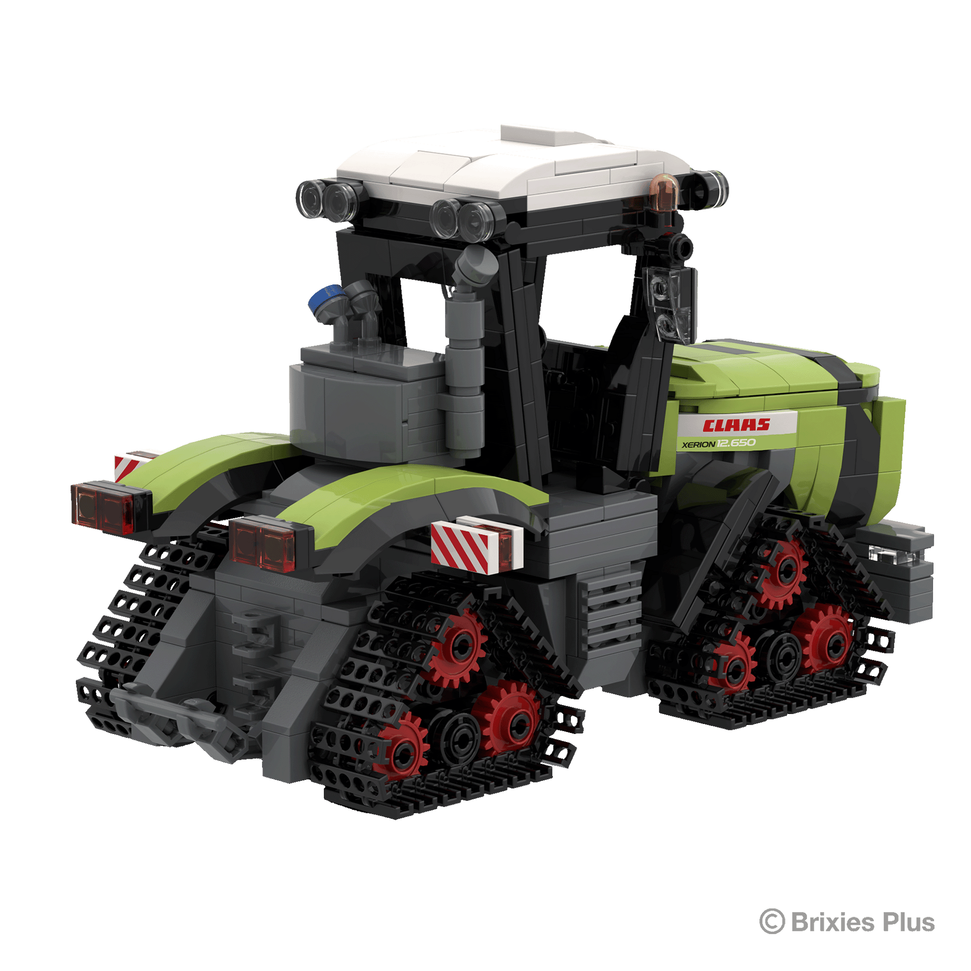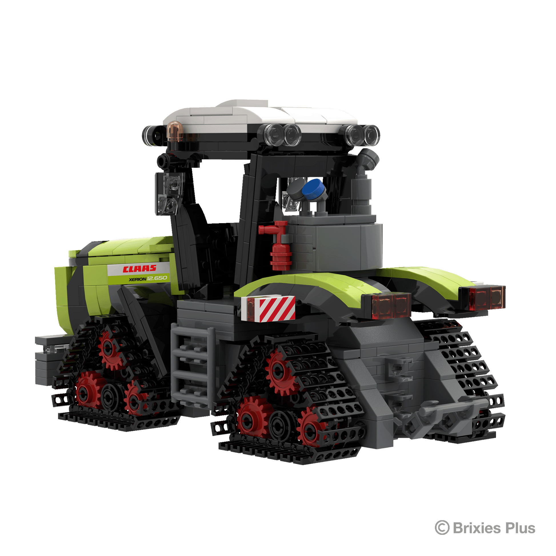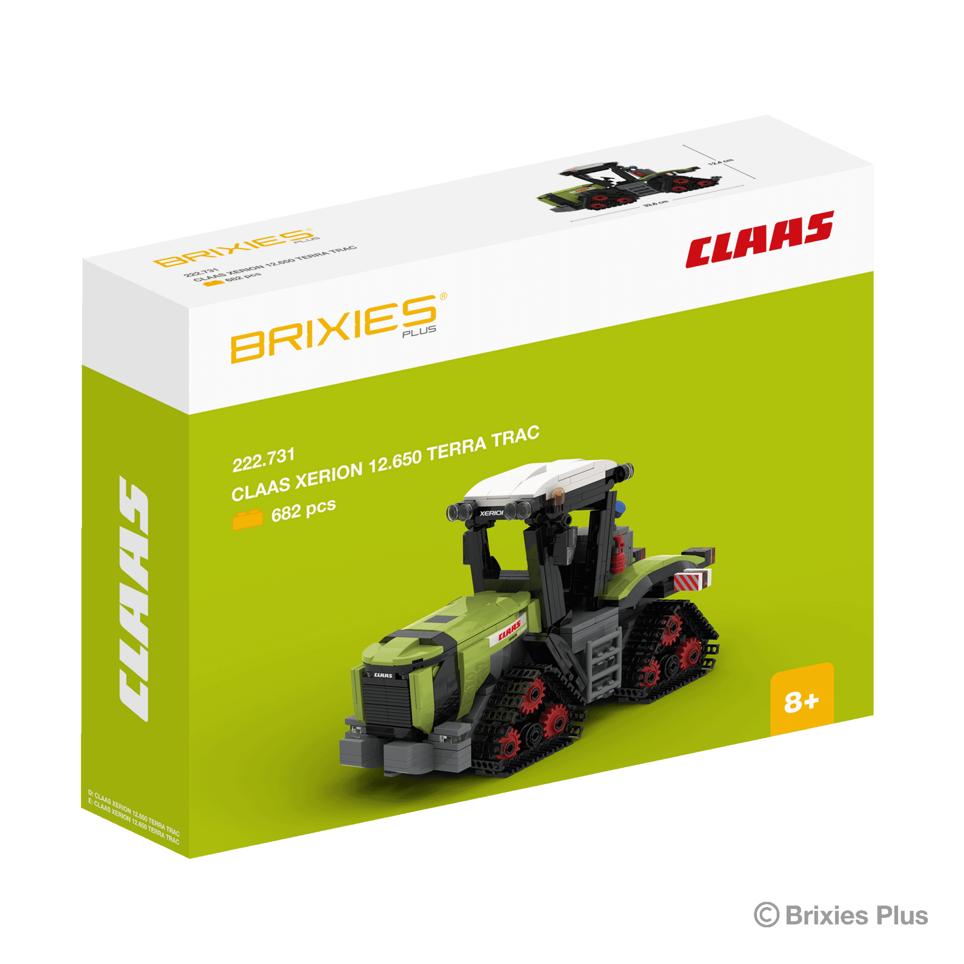 The BRIXIES Plus "CLAAS Xerion 12.650 TERRA TRAC" building kit consists of a total of approx. 682 bricks and measures approx. 33.6 cm long, 12.7 cm wide, and 12.4 cm high when assembled. BRIXIES Plus building bricks are suitable for children aged 8 and up. The bricks are made of high-quality ABS plastic and comply with the latest safety standards.